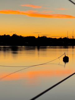 Bevor wir Finnhamn verlassen und uns in Position bringen, zieht es uns erst nochmal in den „Krogen“. Es hat uns dort so gut gefallen, dass wir mehr von diesem Gefühl wollen. So finden wir uns nach einer großen Runde mit Judy auf der gemütlich-sonnigen Holzterrasse ein. Schlürfen unsere köstlichen Cappuccini und genießen jeden Bissen unserer Toast „Skagen“. Gleichzeitig ziehen die Boote lautlos durch das nahe Fahrwasser. Judy liegt friedlich unter dem Tisch und döst vor sich hin. Herrlich!