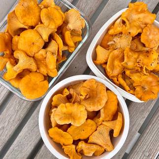 Den nächsten Tag wollen wir mit einer ausgiebigen Entdeckungstour über die Insel beginnen. Spontan wird die Unternehmung durch das Pilzesammeln erweitert, denn unser Nachbar kommt gerade mit einem prall gefüllten Korb voller Pfifferlinge zurück. Unser Jagd- und Sammeltrieb ist geweckt und nach einer kurzen Einweisung begeben wir uns ins Unterholz.
