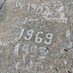 Zum Großteil bewaldet, halten wir uns auf der kargen nordöstlichen Seite auf. Hier können wir mit Judy toben, über die Felsen klettern, die vielen kleinen Pools erkunden und so manch moderne „Felsmalerei“ finden.