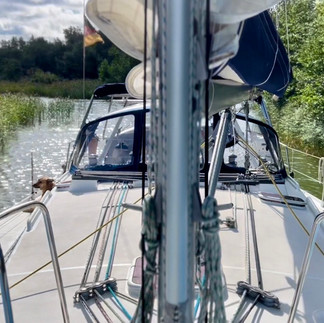 Die im Netz recherchierte Tiefe von 1,5m stimmt sowohl für das „Kanälchen“ als auch für den See. Lediglich einfahrend an Steuerbord scheint etwas am Ende im Kanal zu liegen. Die schiffbare Breite würden wir mit maximal 4,5m angeben.