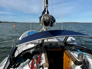 Nach mehreren windigen Ostwindtagen ist ein Dreher über Nord auf West vorhergesagt. Perfekt für die Strecke nach Stralsund. Also los, ich bringe Ari von "Wohn-" wieder in "Fahrtenmodus" und wenig später sind wir unterwegs. Es geht immer brav durch die Fahrwasser um keine Überraschung zu erleben. Einmal, ziemlich zu Beginn, passiert es aber doch. Es fühlt sich an, als würde uns etwas festhalten. Ich peile die Tonnen vor und hinter uns. Wir sind minimal neben dem Fahrwasser. Es folgt der Blick aufs Echolot...na hoppla! Das ist zu flach mit abgelassenem Schwert. Krass, wie abrupt das Fahrwasser endet.